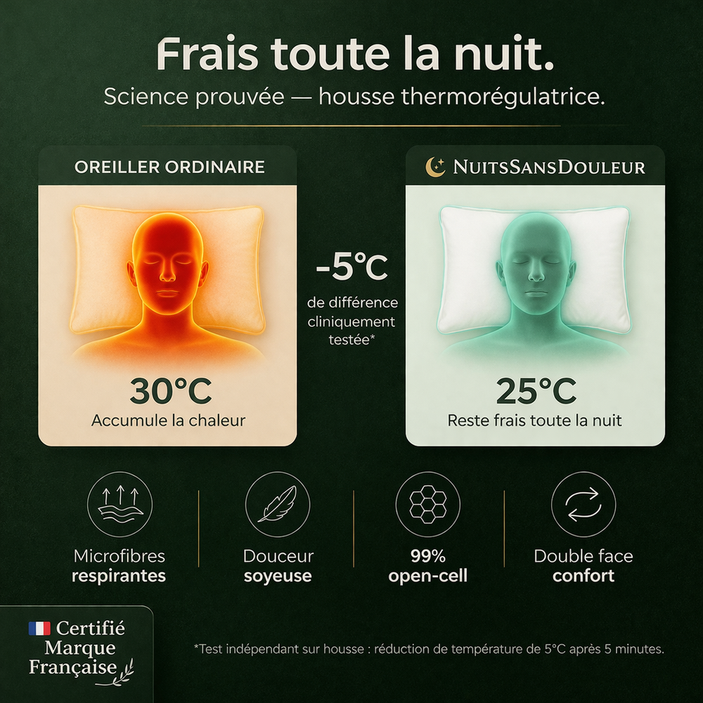 Un oreiller ordinaire maintient votre tête dans une position déviée pendant 7 à 8 heures chaque nuit. Sur une année, c'est plus de 2 500 heures de pression continue sur vos disques cervicaux.